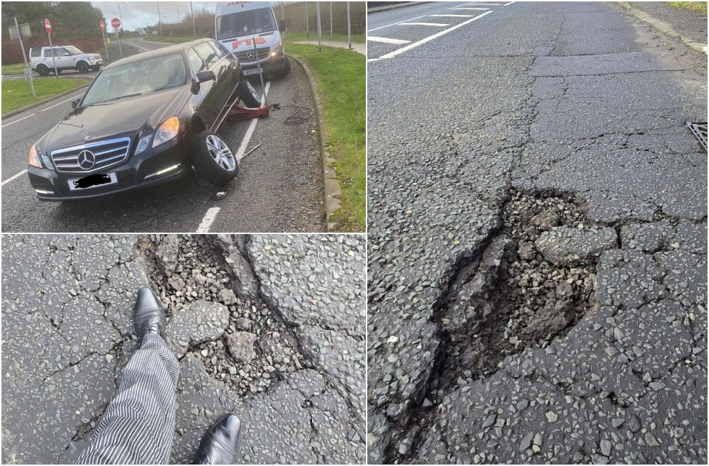 Mallon Funeral Directors shared details of the incident on social media, describing how their limousine suffered serious damage due to the state of the road surface.