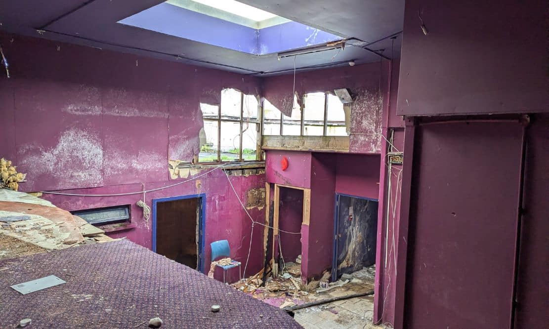 Today, it lies in a sorry state of repair. Almost cave-like from the back entrance, the building – previously the Spider’s Rest snooker hall before its nightclub transformation – has been partially torn down to reveal its inner skeleton.