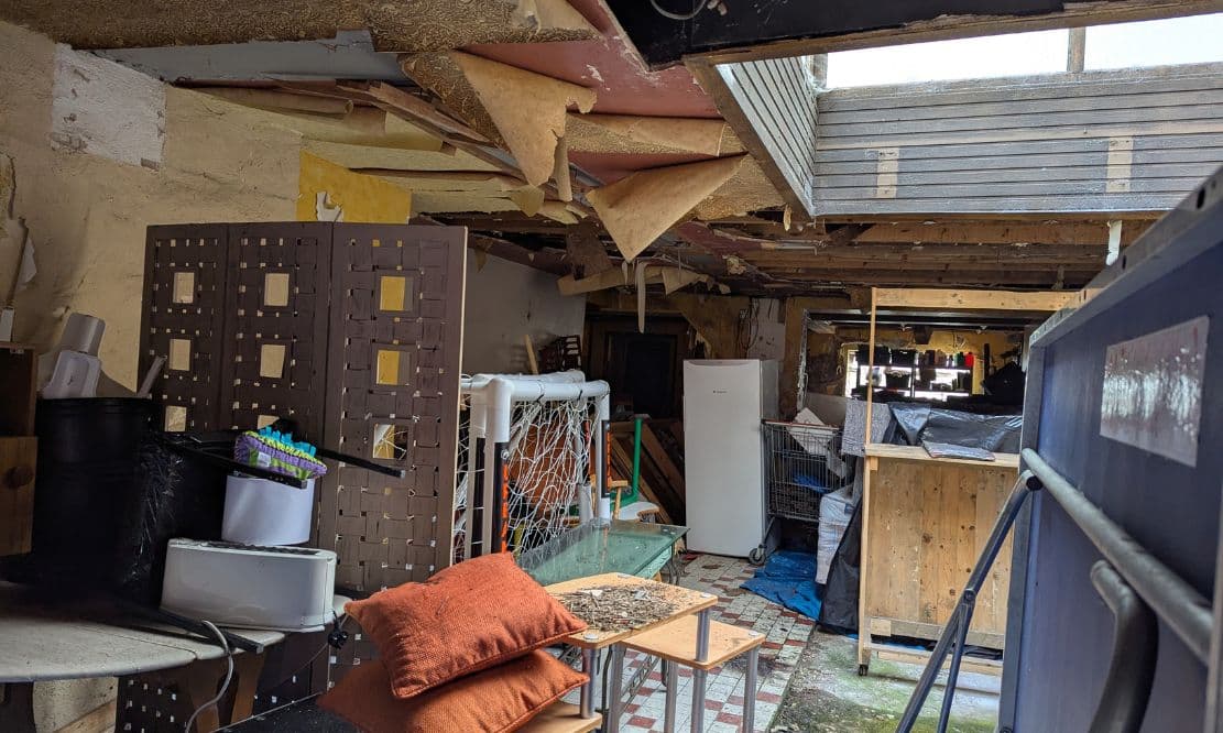 Rainwater now streams through the dilapidated remnants of roof and pools among the cracked and missing floor tiles of the former dancefloor below.