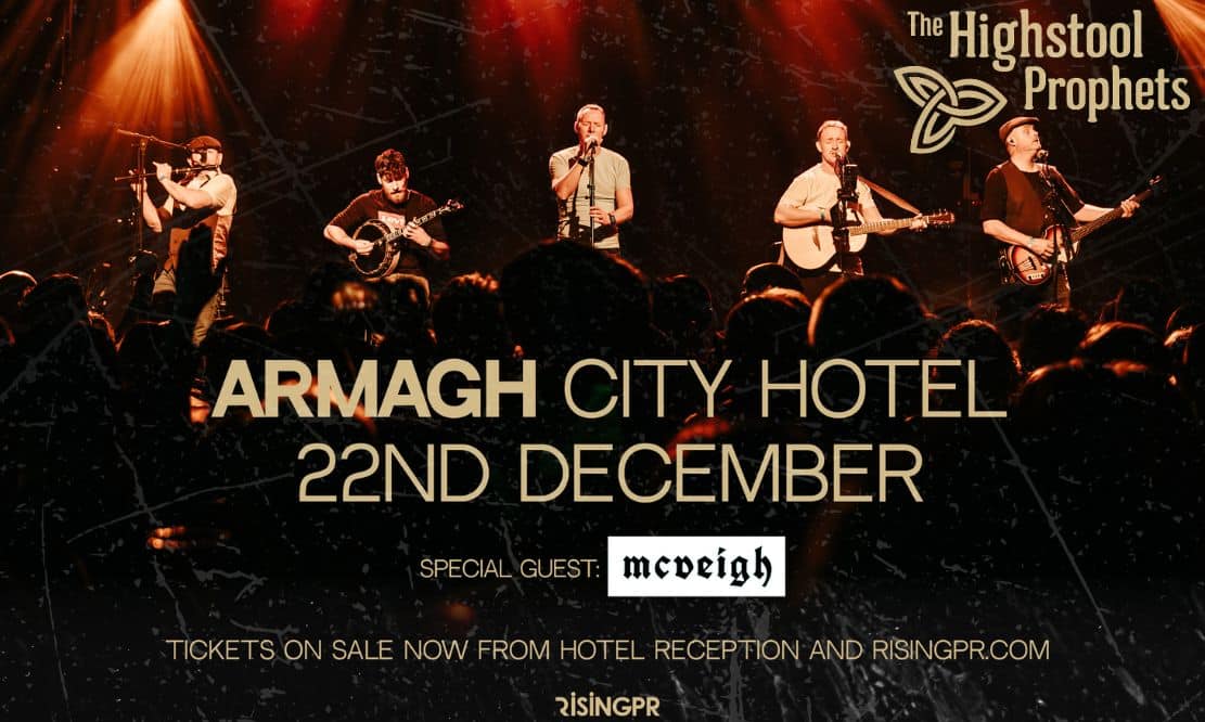 Armagh City Hotel is delighted to announce that one of Ireland’s most energetic and sought after folk acts, The Highstool Prophets, will perform live in concert on Monday, December 22, 2025. The band, renowned for their unique twist on classic folk and country anthems, is set to deliver a memorable night of music to their Armagh fans.