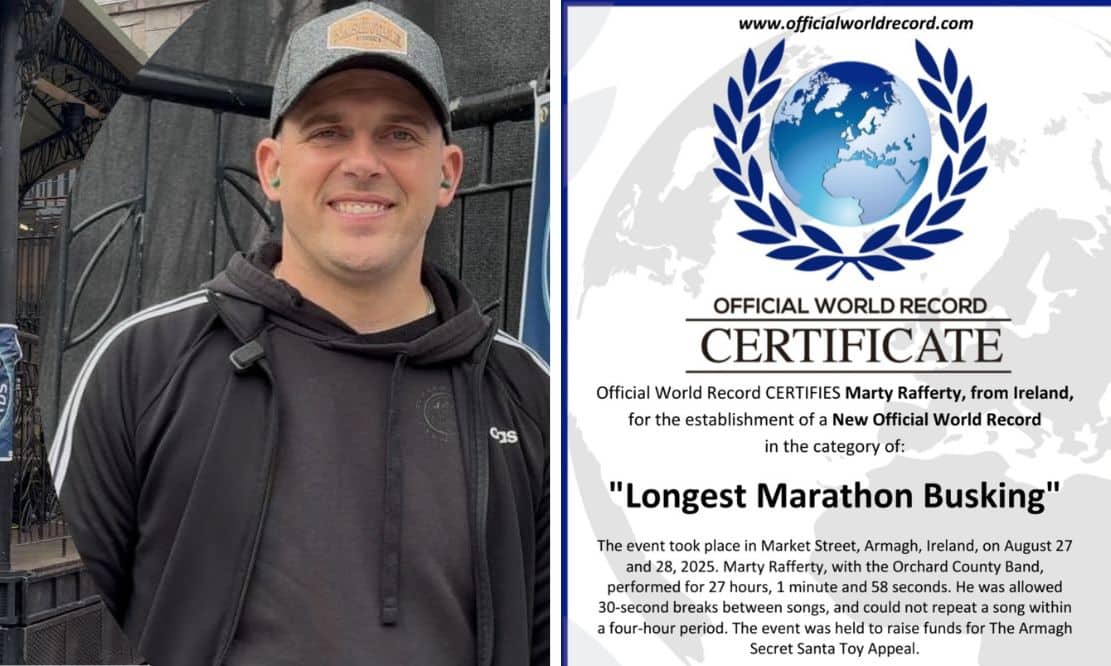 It’s official! Armagh musician’s incredible 27 hour busk-a-thon record certified… but not by Guinness World Records
