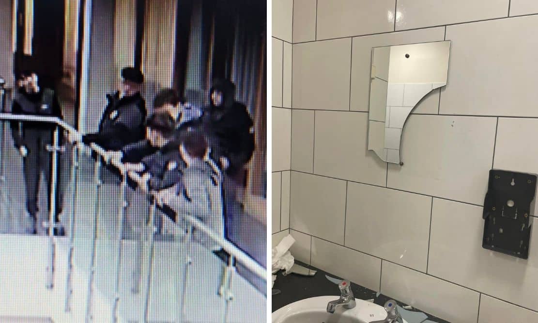 She also shared a number of CCTV stills – with faces covered – of the individuals believed to be at fault and an image of a smashed mirror in one of the toilets.