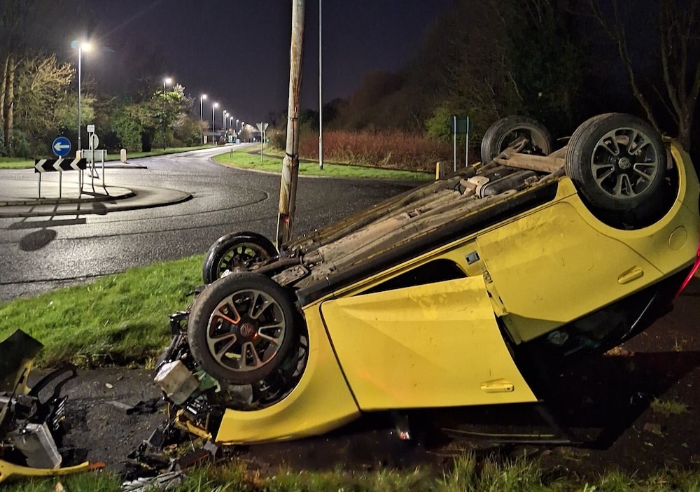 Officers from Lurgan’s Local Policing Team attended the scene of a single-vehicle collision close to the hospital, where they found the vehicle on its roof on the footpath, having collided with a lamppost.