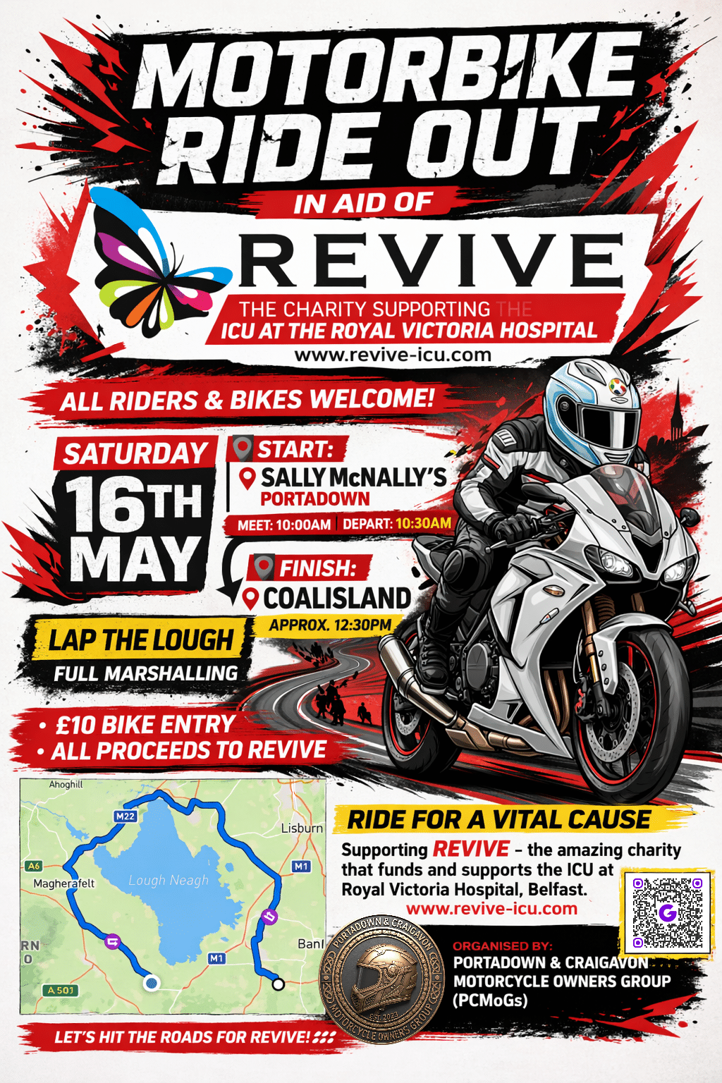 All are welcome to come along on the day and all riders are invited to take part in this fully-marshalled event, with the cost of £10 per bike going towards the overall total for REVIVE.