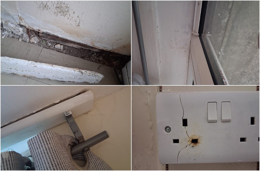 She added that cracks and weaknesses in the roof remain, with water now leaking around window frames and down the walls, and that contractors who were due to plaster door frames and fix skirting boards last Friday have still not appeared.