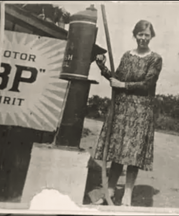 Great aunt Ena dispensing fuel in the 1930s.
