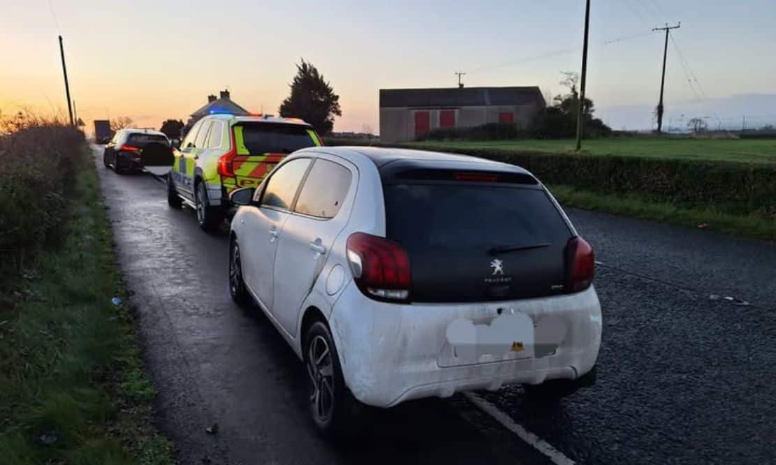 The car was reported by a member of the public as “swerving all over the road” near Ballygawley, and was sighted by officers from Dungannon.