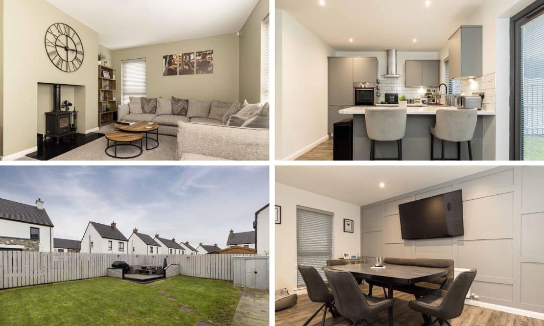 Step inside the dual aspect living room and your eye is drawn to the multi fuel stove which is the focal point in this well laid out room. The kitchen is the heart of every home, and this one is a beauty! The kitchen itself has a great range of contemporary high and low level units with breakfast bar, complimented by top branded integrated appliances. Open plan to dining / living area, this is a very sociable room within this home creating a welcoming hub for your family and friends. A utility and WC completes the ground floor.