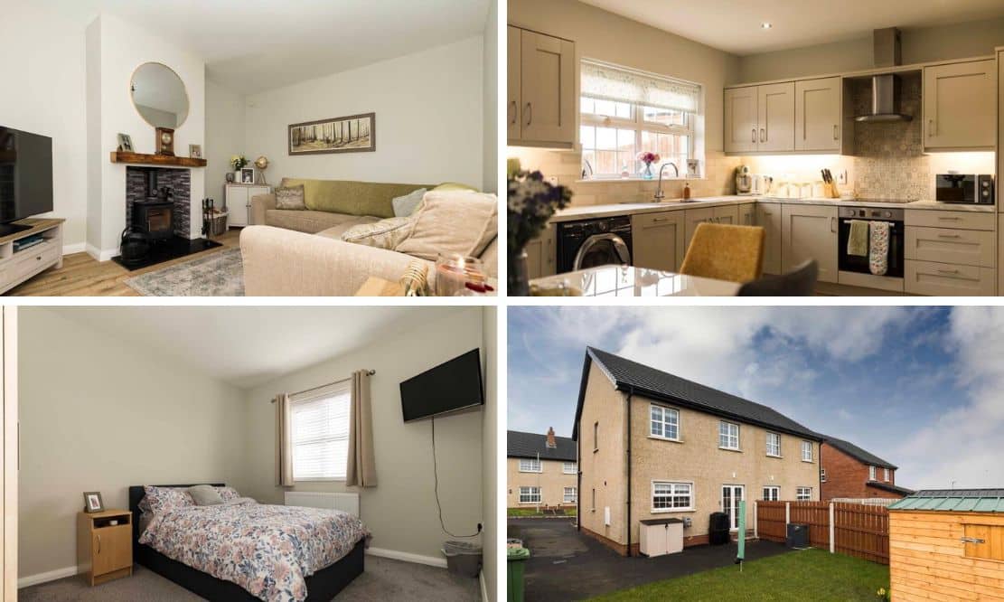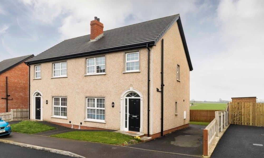 This bright and spacious semi detached home is well positioned within this popular development and benefits from countryside views to the rear. Relax in the generous living room which has a multi fuel stove as a focal point. The kitchen is the full width of the property and thus has plenty of room for dining and living making this a very sociable area. It offers an excellent range of storage units, complimented by integrated appliances.