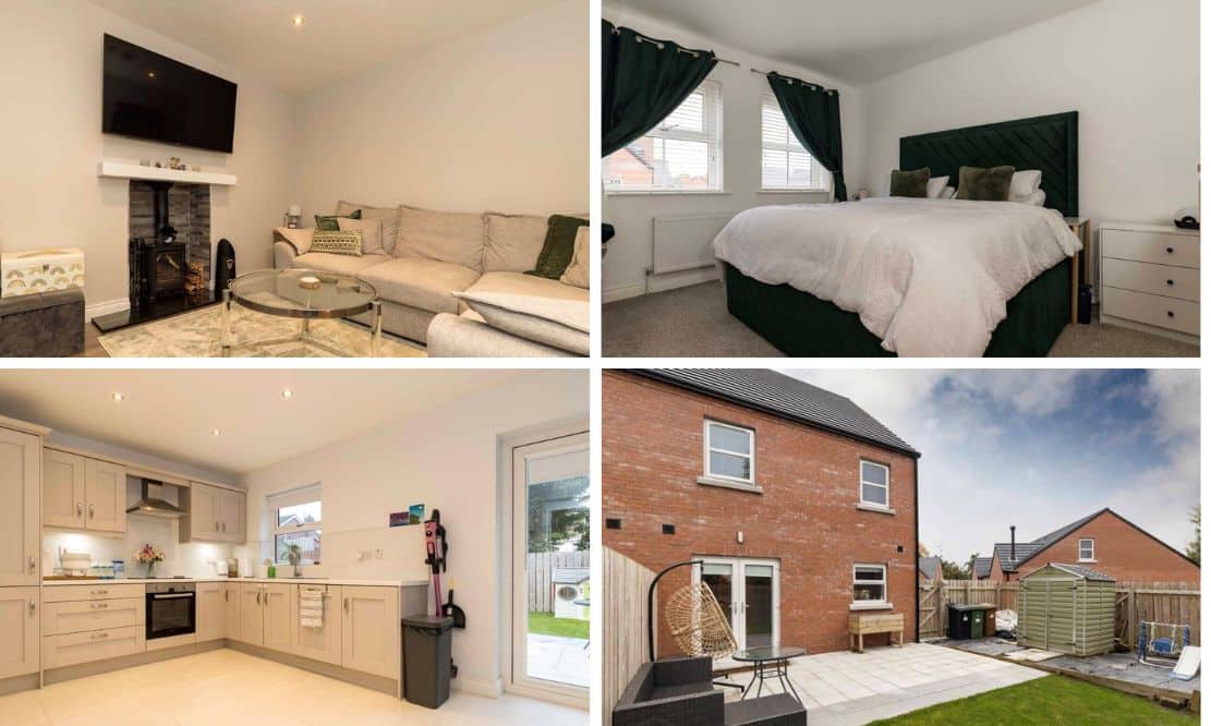 Feature fireplace with multi fuel stove, tiled chamber and wood mantel above. TV point for wall mounted TV. Dual panel radiators. Dimmable recessed lighting. Wood effect laminate flooring.