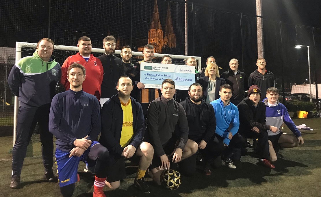 A group of footballing friends have raised £1,000 for Fleming Fulton school in Belfast by saving leftover money from their weekly sessions.