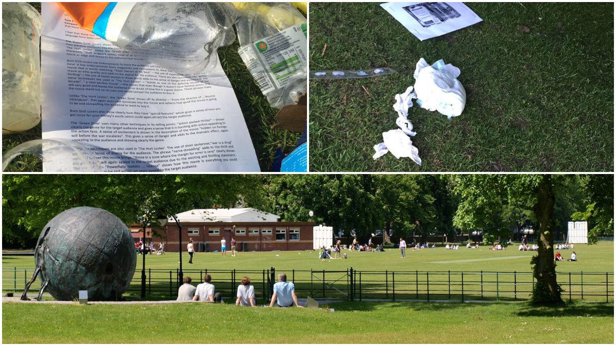 Hot food takeaway and confectionery wrappers, plastic bottles and drinks cans, even school notes, obviously left behind after exams end and considered no longer needed. These are just some of the items to be found.