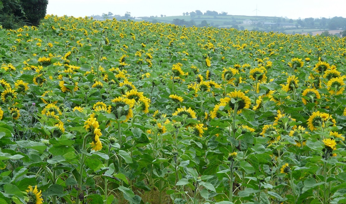 Up to 60,000 sunflower plants were planted from seed in the three-acre field across from 38 Mill Hill and are now in full bloom.
