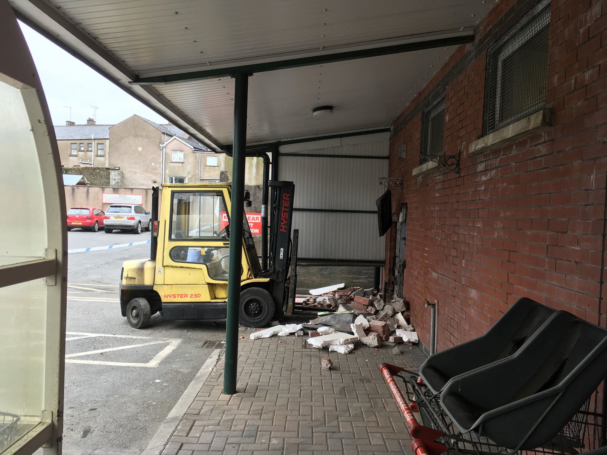 Shortly before 2am thieves used a Forklift to remove an ATM machine from the building before removing the cash from inside the machine.